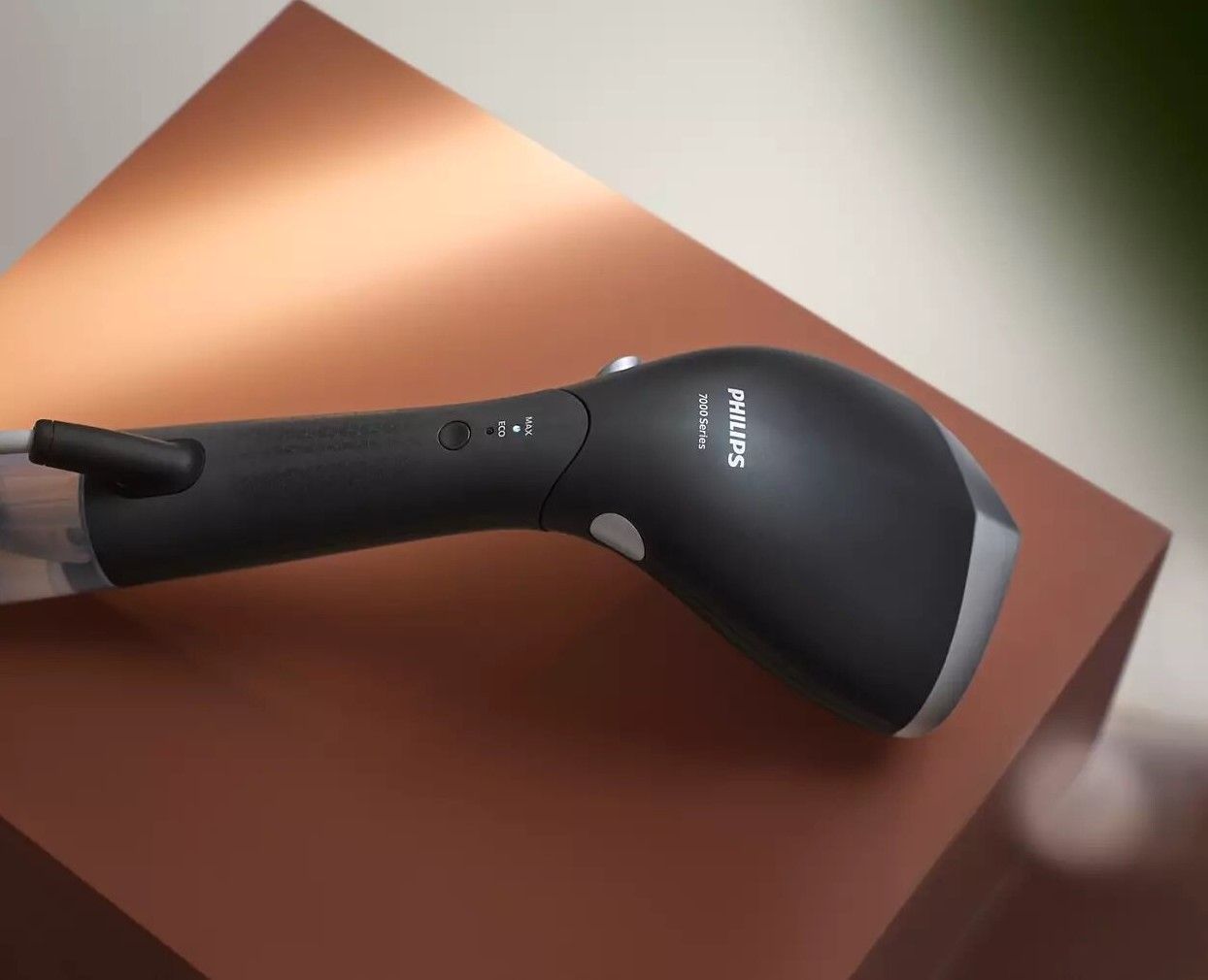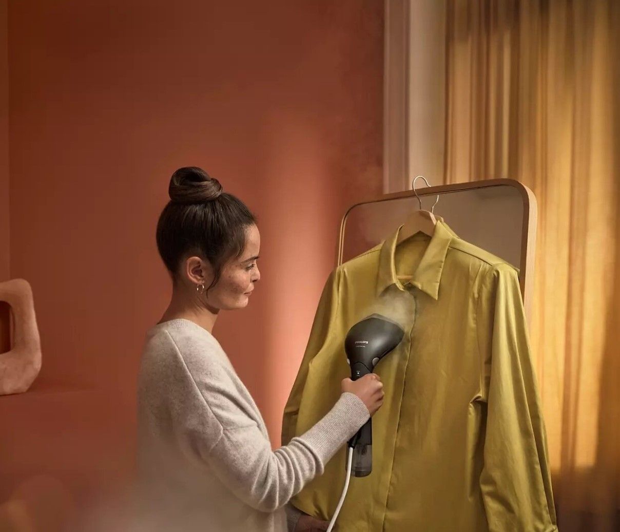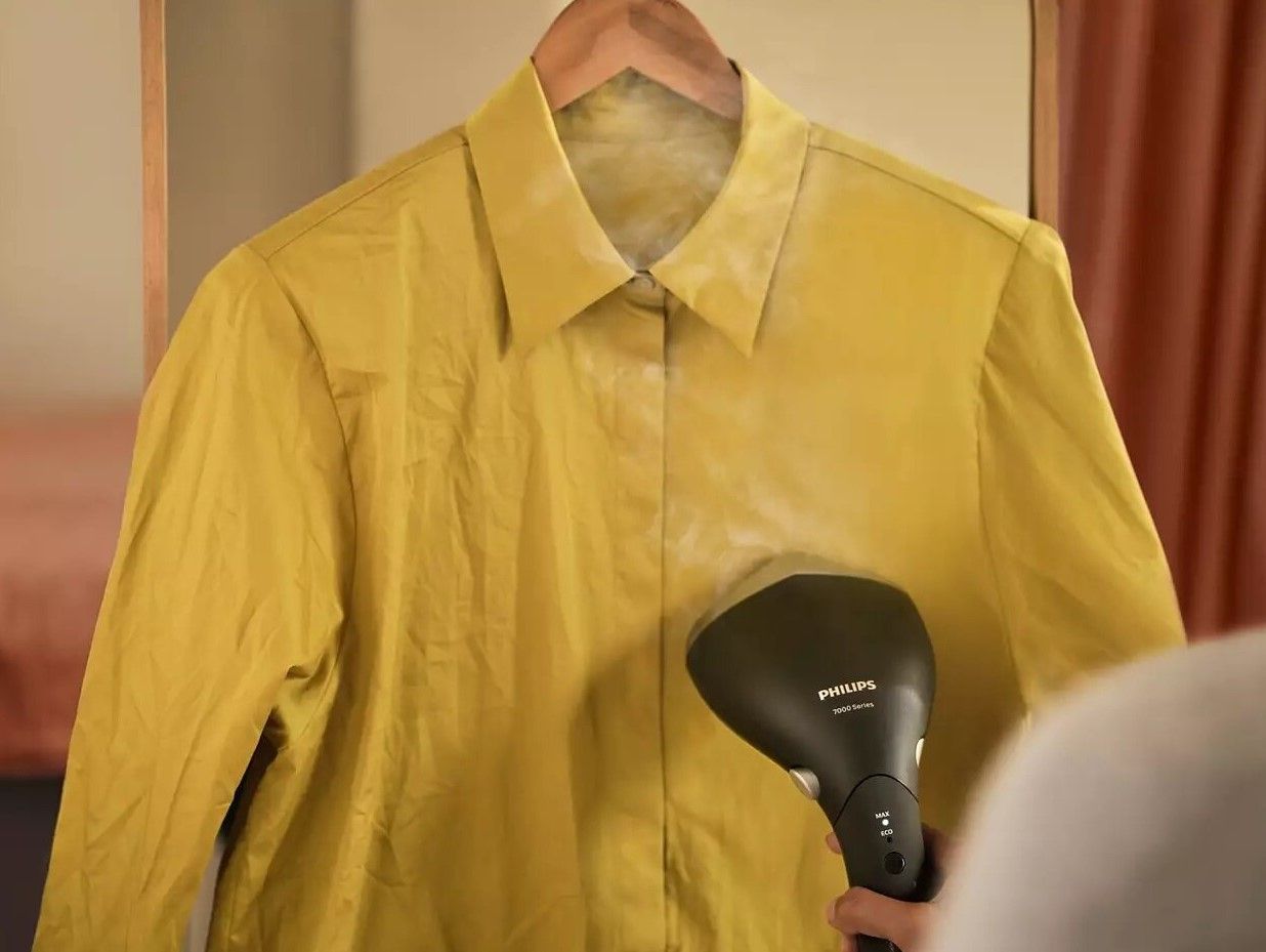 Seria 7000 ma małe wymiary, dzięki czemu możesz zabrać swój steamer ze sobą, aby odświeżyć ubrania, gdy będę tego potrzebowały — bez rozkładania deski do prasowania.