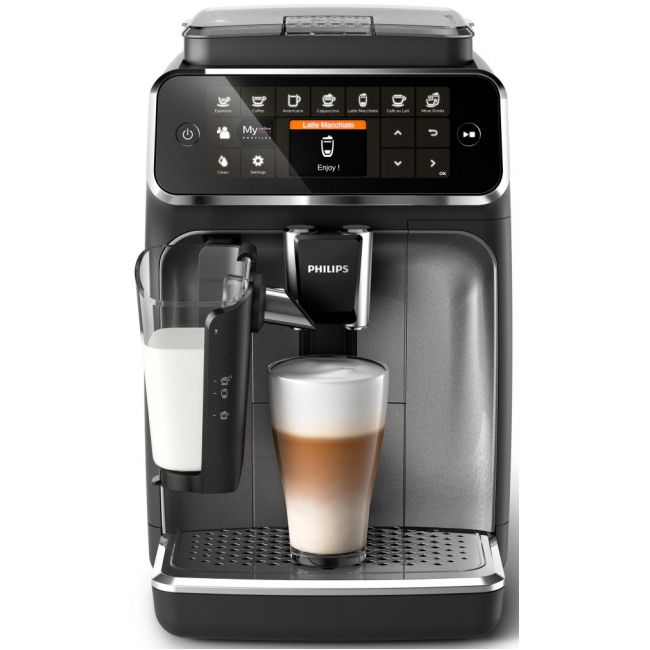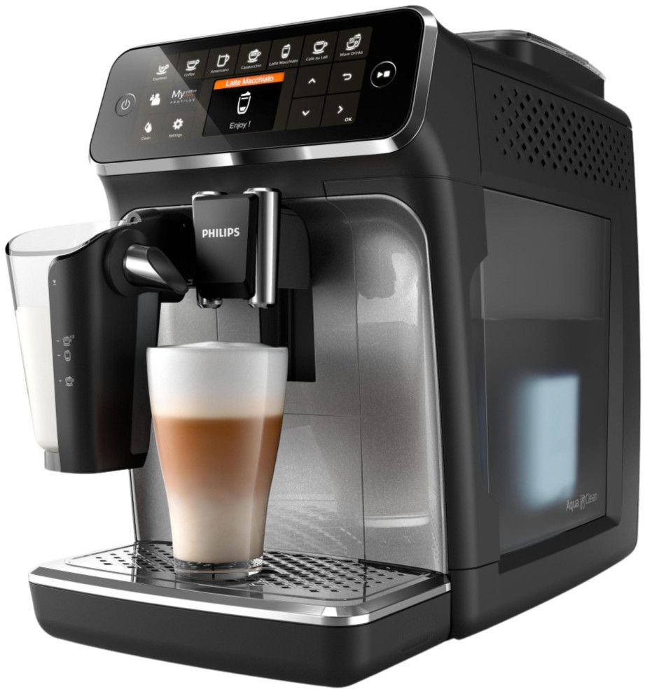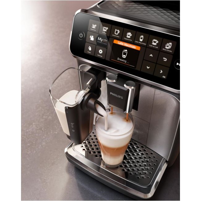 Wystarczy jeden przycisk, aby w łatwy sposób przygotować aromatyczną kawę — espresso, klasyczną czarną kawę, cappuccino czy latte macchiato. Prosty w użyciu system spieniania mleka LatteGo zwieńczy kawy mleczne aksamitną gładką pianką, a jego czyszczenie zajmie zaledwie 15 sekund*