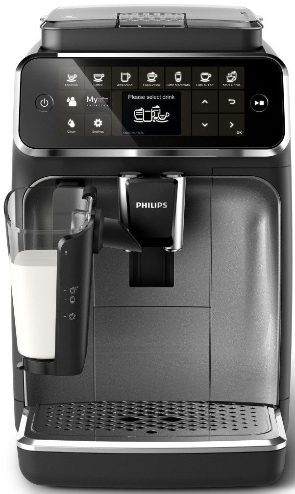 Wystarczy jeden przycisk, aby w łatwy sposób przygotować aromatyczną kawę — espresso, klasyczną czarną kawę, cappuccino czy latte macchiato. Prosty w użyciu system spieniania mleka LatteGo zwieńczy kawy mleczne aksamitną gładką pianką, a jego czyszczenie zajmie zaledwie 15 sekund.