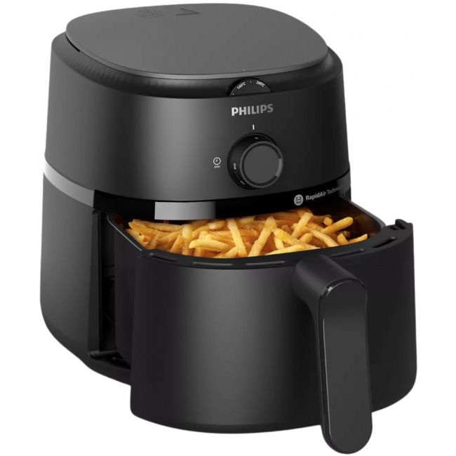 Zwarta konstrukcja jest odpowiednia dla kuchni o każdym rozmiarze. Patelnia o pojemności 3,2 l mieści do 400 g frytek, 4 udka z kurczaka lub 400 g warzyw.